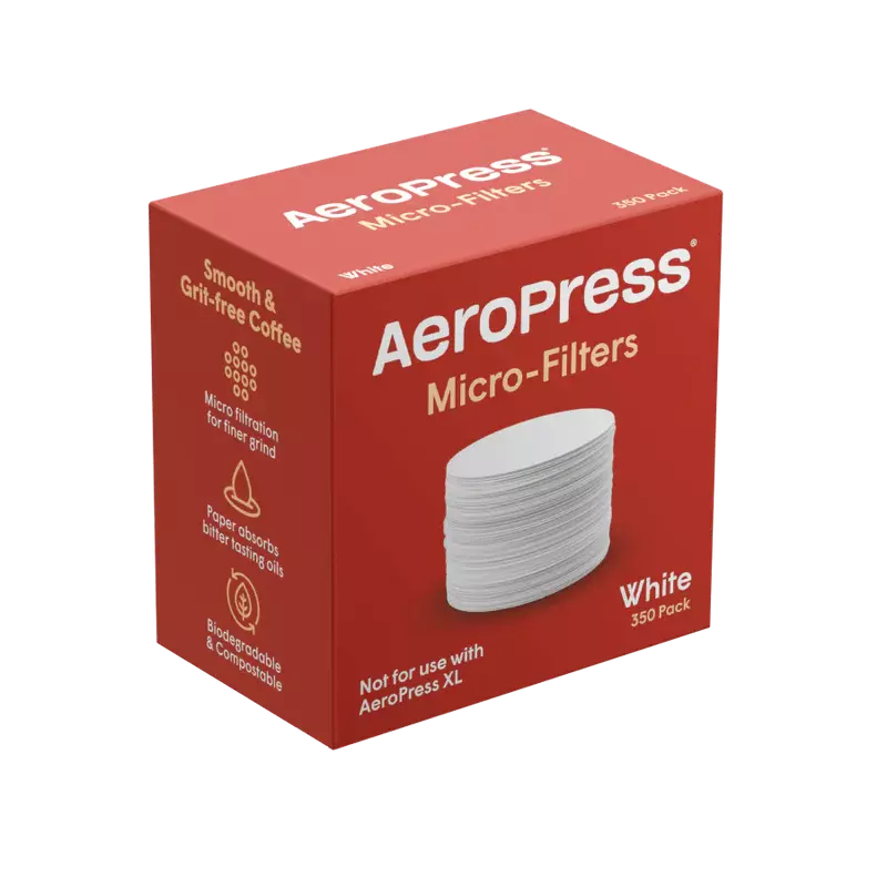 Papirkaffefiltre av høy kvalitet er spesielt utviklet for bruk med AeroPress-kaffebryggerne i standardstørrelse. Mikrohull filtrerer og fanger opp kaffegrut, slik at det ikke kommer ned i koppen, mens kaffefilterpapiret absorberer bittersmakende oljer. AeroPress-kaffefiltre av papir er en viktig del av bryggeprosessen.