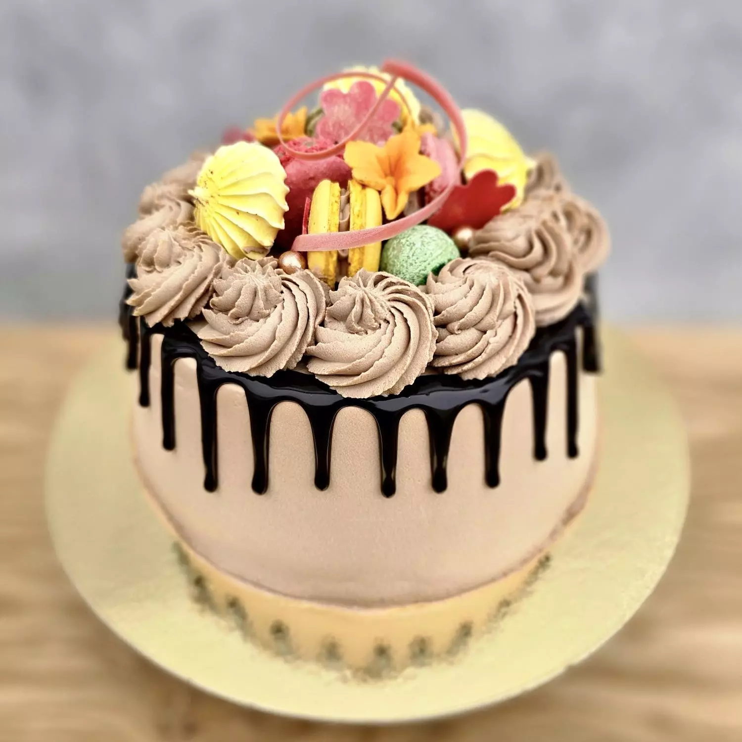 Kaken er også dekket med den samme kremen som er silkemyk og luftig.